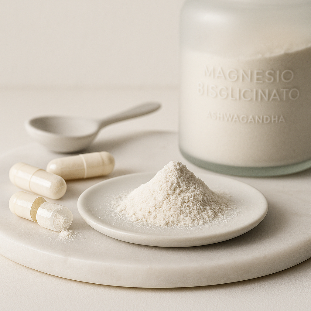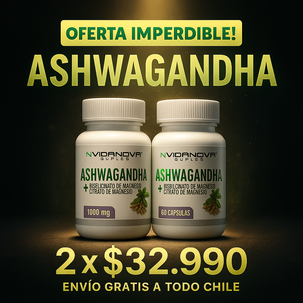 Nuestra fórmula incluye bisglicinato y citrato de magnesio, dos compuestos altamente biodisponibles que potencian el efecto relajante de la ashwagandha, promoviendo un sueño más profundo y reparador. Este complemento ideal ayuda a equilibrar tu sistema nervioso y mejorar tu descanso noche tras noche.