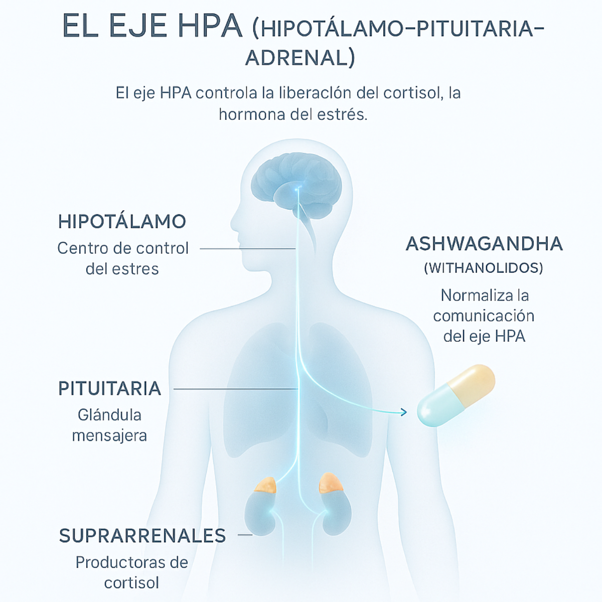 La ashwagandha es una planta adaptógena tradicional de la medicina ayurvédica. Ayuda al cuerpo a adaptarse al estrés y a reducir los niveles de cortisol, la hormona del estrés. Además, mejora el estado de ánimo, la energía, el sueño y el equilibrio hormonal de forma natural.