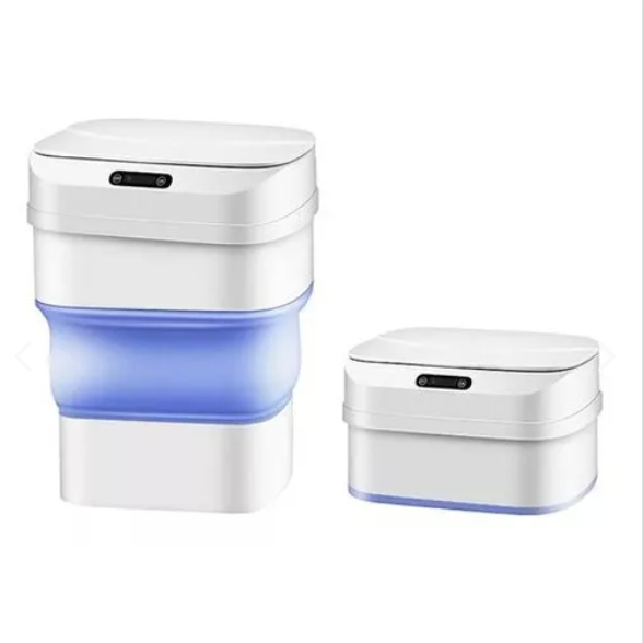 Papelera Inteligente Automática Plegable Con Sensor de Proximidad, esta papelera posee un sensor con un rango de 11cm la cual al detectar movimiento esta se abre para poder botar la basura, y asi evitar que entremos en contacto con la basura, también debido a su diseño práctico se puede ocupa en cualquier espacio ya sea el baño, la oficina o en la habitación.