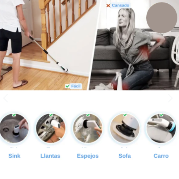 ¿Cansado de frotar y frotar sin obtener los resultados que deseas? La suciedad difícil ya no será un problema. Con nuestro Cepillo Limpiador Inalámbrico 7 en 1, limpiar será más rápido, fácil y sin esfuerzo.