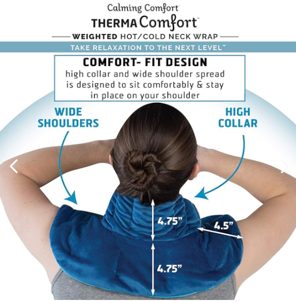 Envoltura de hombro para cuello caliente, terapia de presión profunda, aromaterapia a base de hierbas, diseño de ajuste cómodo. Envoltura terapéutica con peso de 3 libras: la envoltura térmica para el cuello ThermaComfort te permite relajarte y rejuvenecer en casa todos los días. Las cuentas de arcilla con peso proporcionan estimulación del tejido profundo que ayuda a aliviar la tensión, calmar el dolor, relajar los músculos doloridos, las articulaciones, la espalda/el cuello y relajarse.