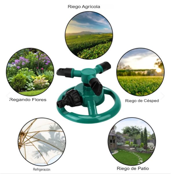 - Versatilidad en el Riego: Desde el césped hasta las flores y los vegetales, nuestro rociador puede regar una amplia variedad de plantas. Su capacidad para girar 360 grados asegura una cobertura eficiente sin importar la forma o tamaño de tu espacio verde.