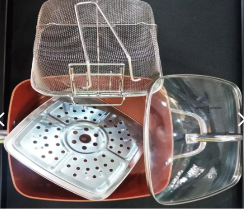 Incluye:Copper Chef ,1 Tapa de Vidrio, 1 Canastilla Freidora ,Rejilla para Cocinar al Vapor Recetario