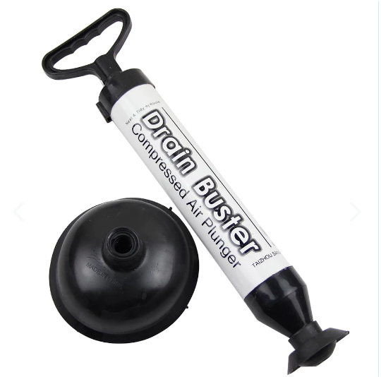 Bombea aire hasta que logres destapar. Incluye accesorio extra que se adapta a cualquier toilettes. Uso sin productos químicos, 100% ecológico.